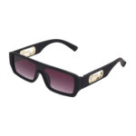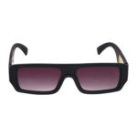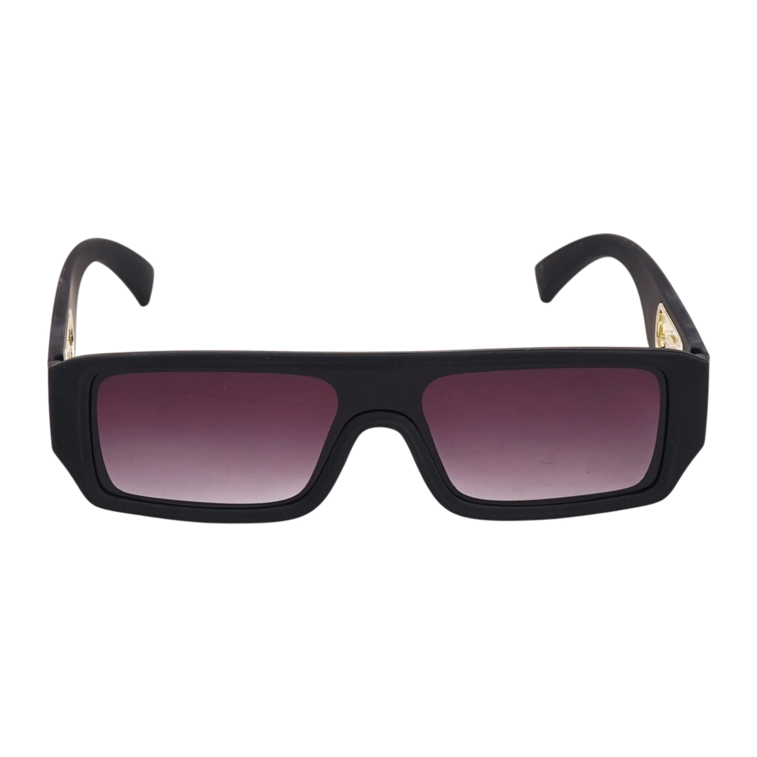 These black rectangle sunglasses with gold accents are a must-have for fashion-forward men. The frame is designed in a sleek, oversized rectangular shape with UV-protected gradient purple lenses for a cool, mysterious look.