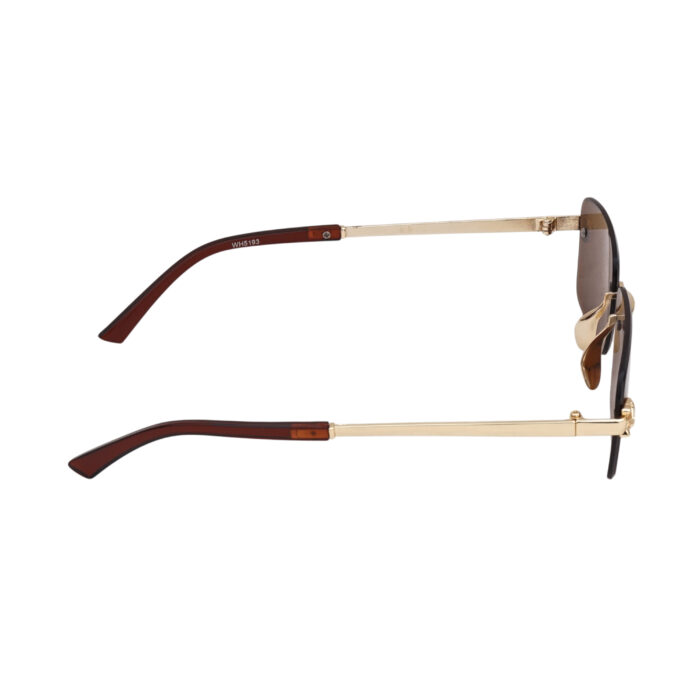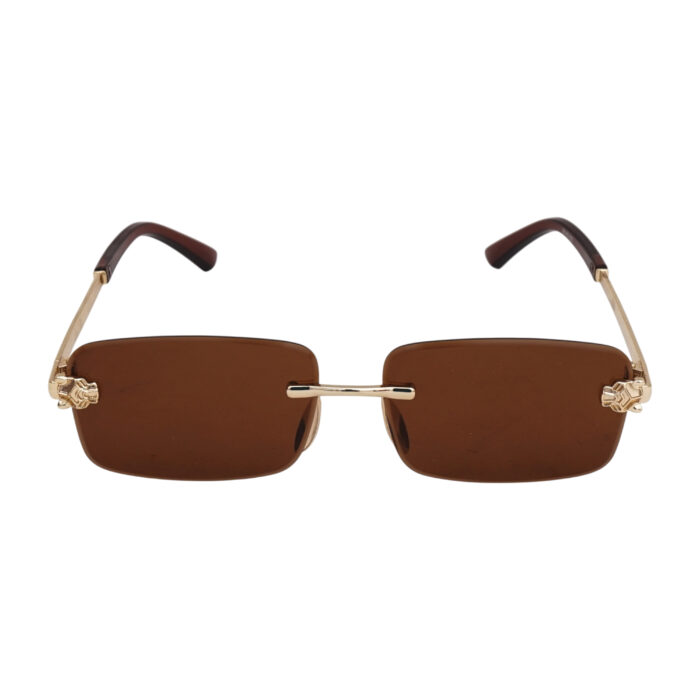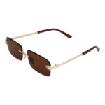 Stylish gold-rimless rectangle sunglasses with brown lenses—perfect for men and women who love bold, minimalist eyewear. Lightweight and UV-protected for all-day wear.