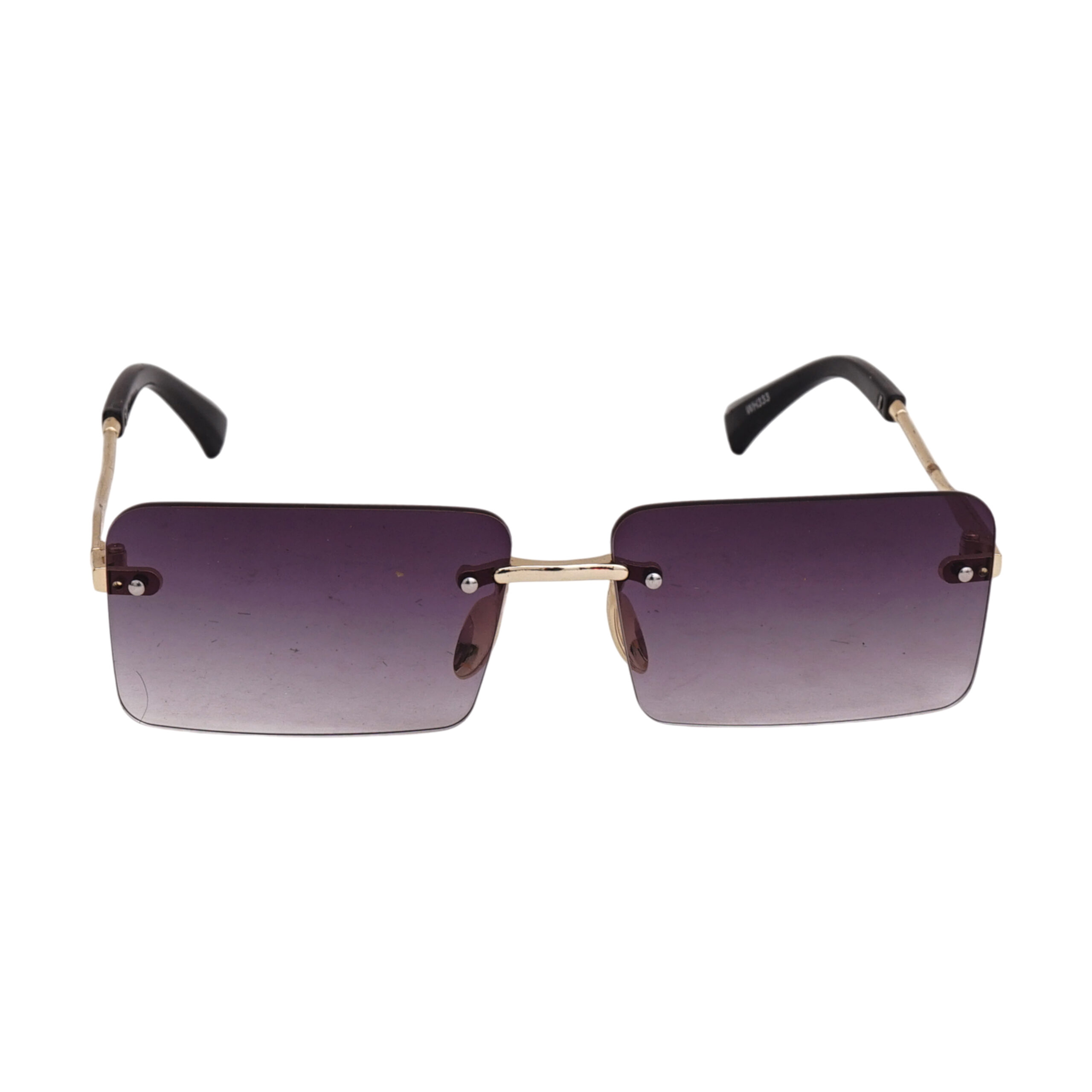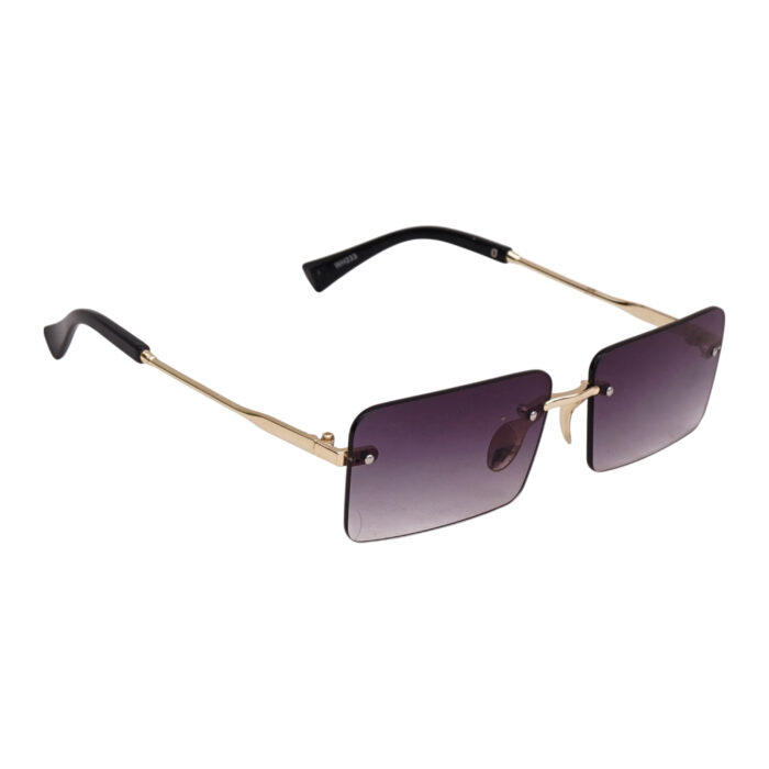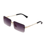 Minimalist rimless square sunglasses with a luxurious gold frame and purple gradient lenses – ultra-light, sleek, and stylish.