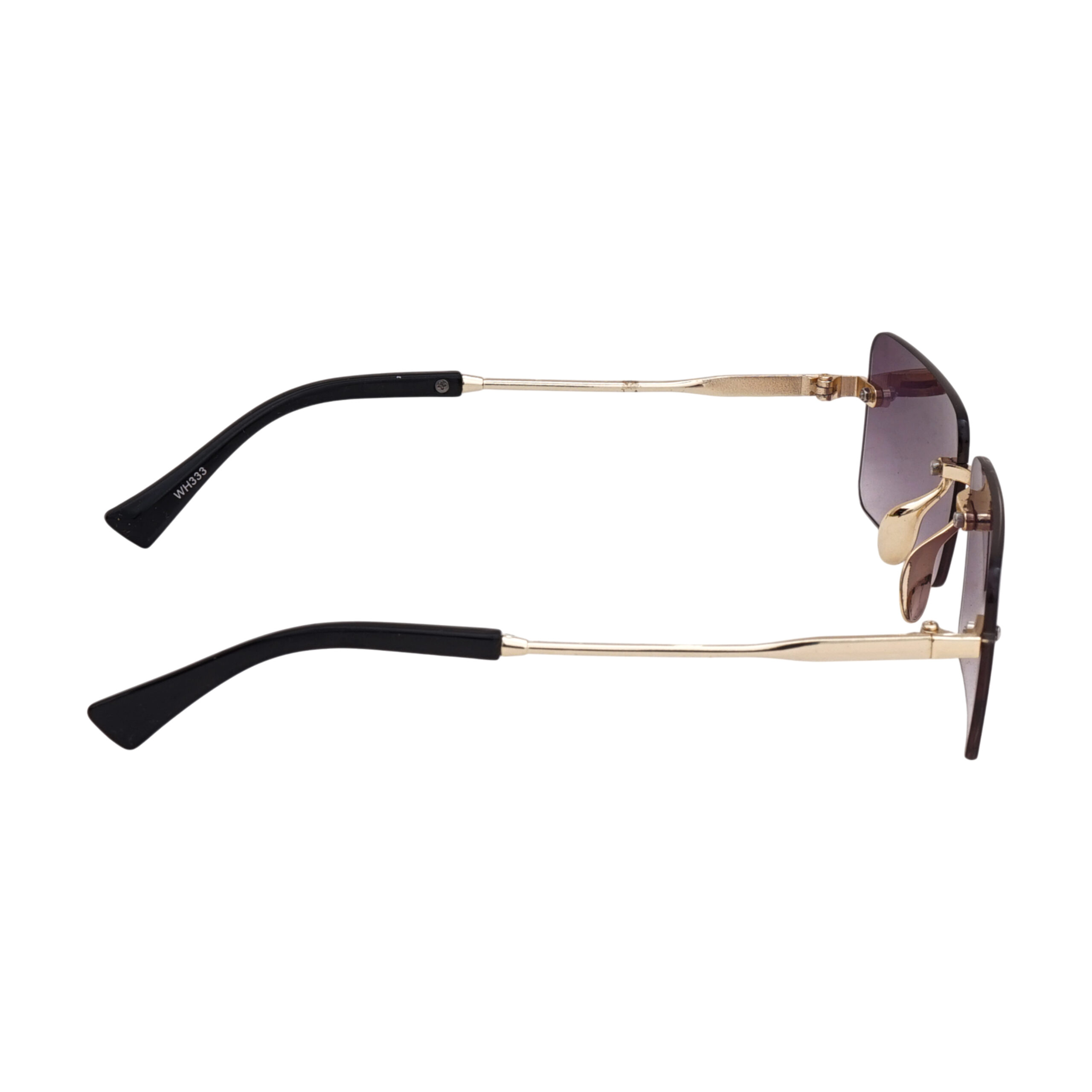 Stay ahead in style with these elegant rimless sunglasses. Featuring a gold metal frame and soft purple gradient lenses, they blend fashion and functionality.